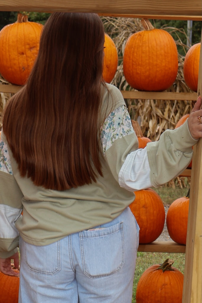 Elevate your wardrobe with this chic, patchwork long sleeve that seamlessly blends style and comfort, allowing you to showcase your unique charm on any occasion.