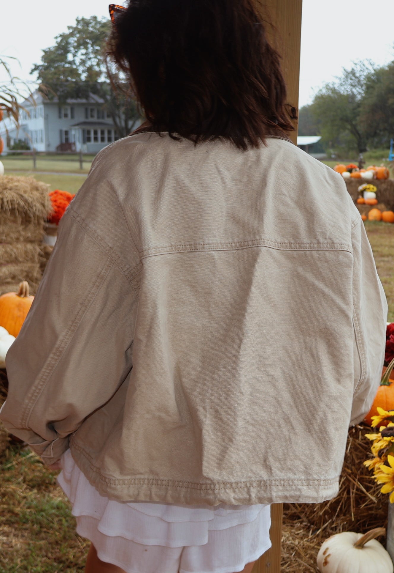 Your new go-to layer for breezy days and cool nights. This semi-cropped utility jacket features a two-tone tan and brown design, functional pockets, and a relaxed fit that adds the perfect touch of laid-back style to any look.