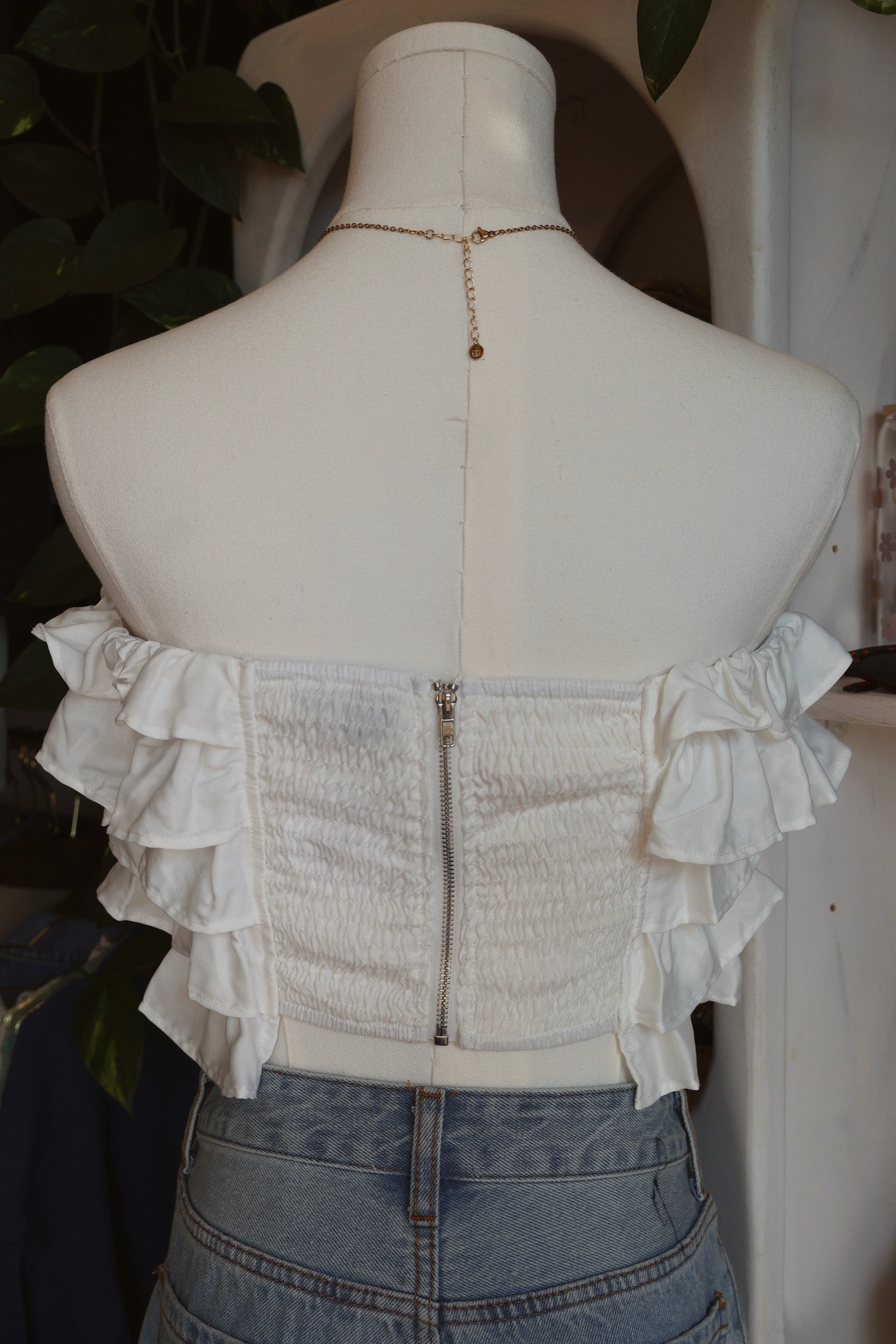 Our white ruffle tube top is a summer staple 🤍 Featuring a flirty layered ruffle design and a stretchy, comfortable fit that stays put all day. This top is perfect for beach days, brunch, or any sunny outing.