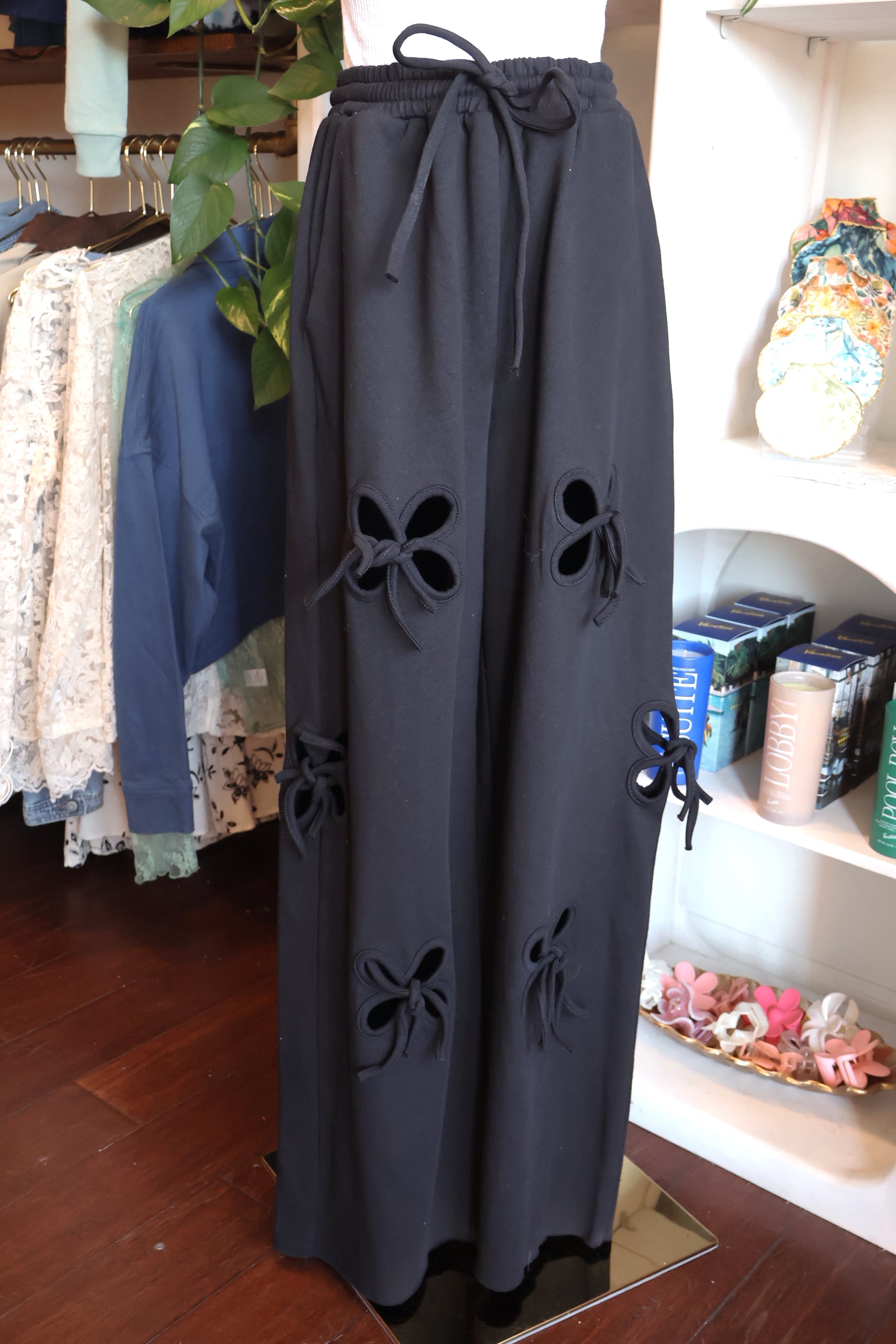 Comfy meets cute 💛 These wide-leg lounge pants feature adorable bow cutouts down the legs and an adjustable drawstring waistband for the perfect relaxed fit.